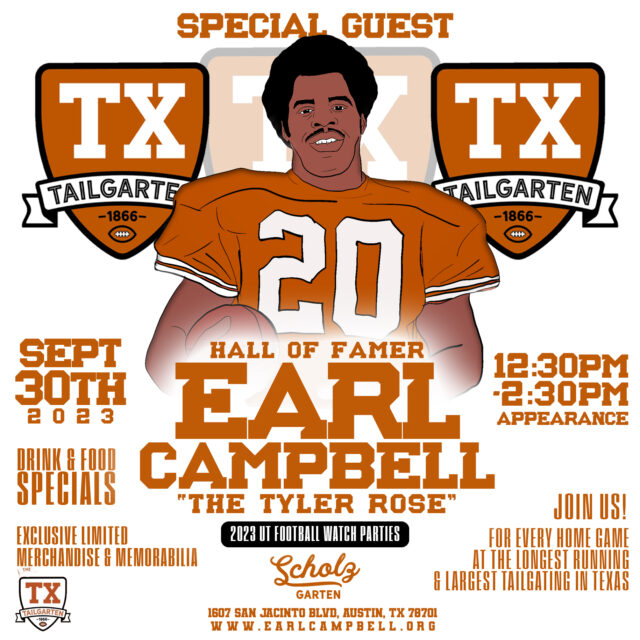 Earl Campbell Appearance Sept 30th | TX Tailgarten